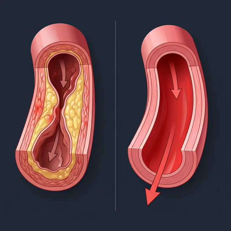 Micro-plaque silently chokes blood flow to erectile tissue starting in your late 30s. The PrimalEngine's shockwave pulses break it apart and force your body to grow new blood vessels. No pills. No clinic. Firmness rebuilt at the source.